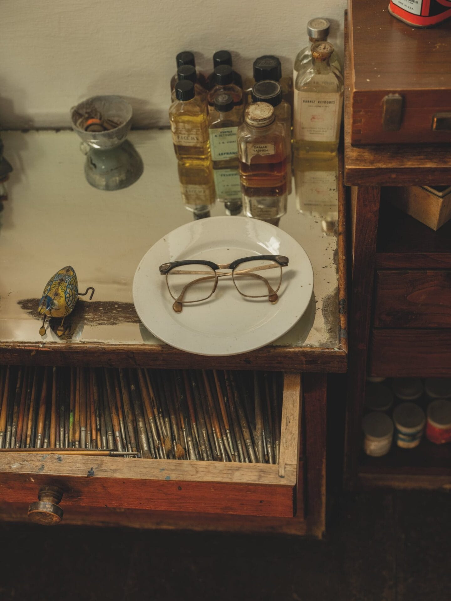The nature of consciousness and even the realm of dreams is an apt entry point to Samson’s latest work, which examines how painting can be what he describes as “true and honest.” What is real? What do we imagine? Throughout art history, animals have long symbolized certain qualities or beliefs, such as dogs as allegories of fidelity and birds as messengers between the earthly and the divine. In the artist’s large-scale compositions, there is a sense of “readability” akin to the narrative-driven Western art genre of history paintings, where the presence of these beings hints at meaning. Yet as we spend time with Samson’s works, curiosity and wonder seem to always overtake glimpses of recognition.