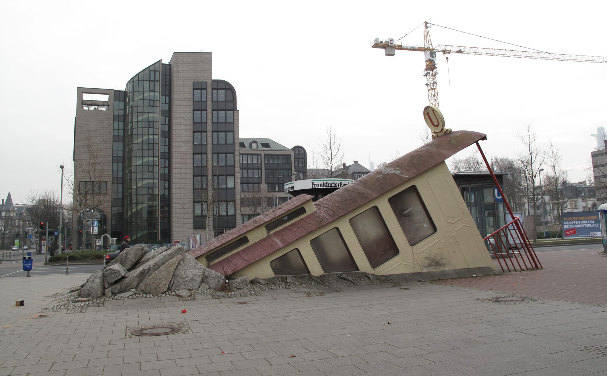 A Partially Submerged Train Car Provides a Dramatic Entrance to Frankfurt’s Bockenheimer Warte Subway Station