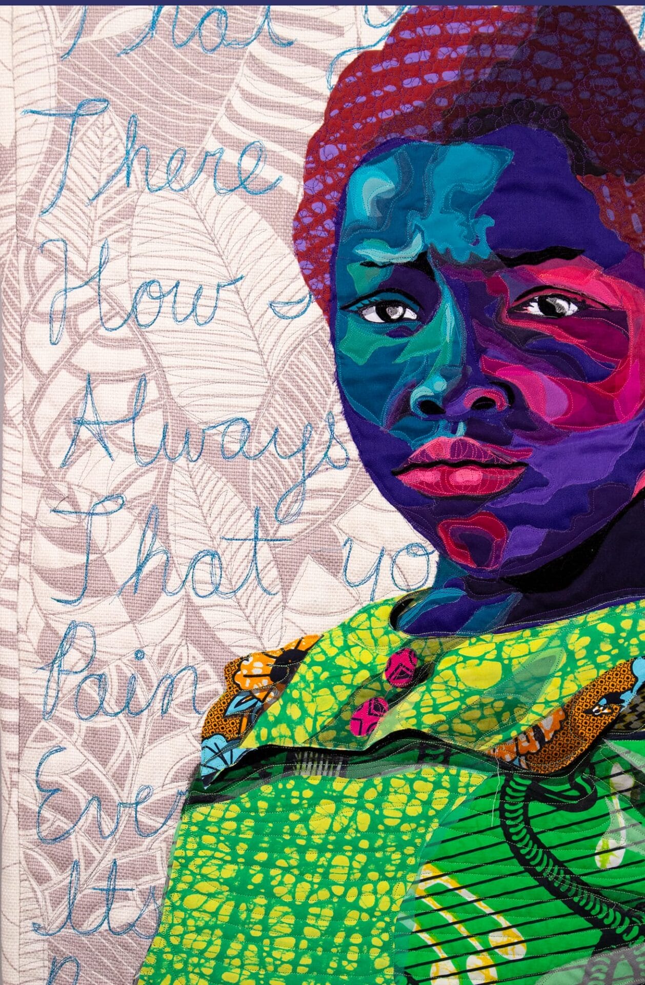 My professor suggested using fabric pieces in my paintings. So I used gel medium to add in fabric onto my canvas. It was the beginning, but it didnโt click to me about being fully immersed into cloth. They had strict rules then, that if youโre a painting major, then your artwork should be more than 50% paint. Mine was literally 50/50. Half the faculty, in my final review, said, โSheโs not painting. How can we award her the degree when sheโs not actually painting?โ The other half were kind of on my side, saying, โShe is painting; sheโs painting with fabric.โ