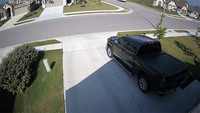 When reviewing the security footage from outside his house in Austin, Texas, Al Brooks spotted an unusual sight: a bird seems to hover past the camera with its wings completely stationary. Of course it wasn’t really hovering (and no, it’s not suspended by strings) but rather the frame rate of the camera matched the flaps of the bird’s wings perfectly resulting in a stroboscopic illusion. This is the same stroboscopic effect you might see in a video of airplane propellers that aren’t moving or when the wheels on a car appear to be frozen. (via Swiss Miss, Neatorama)