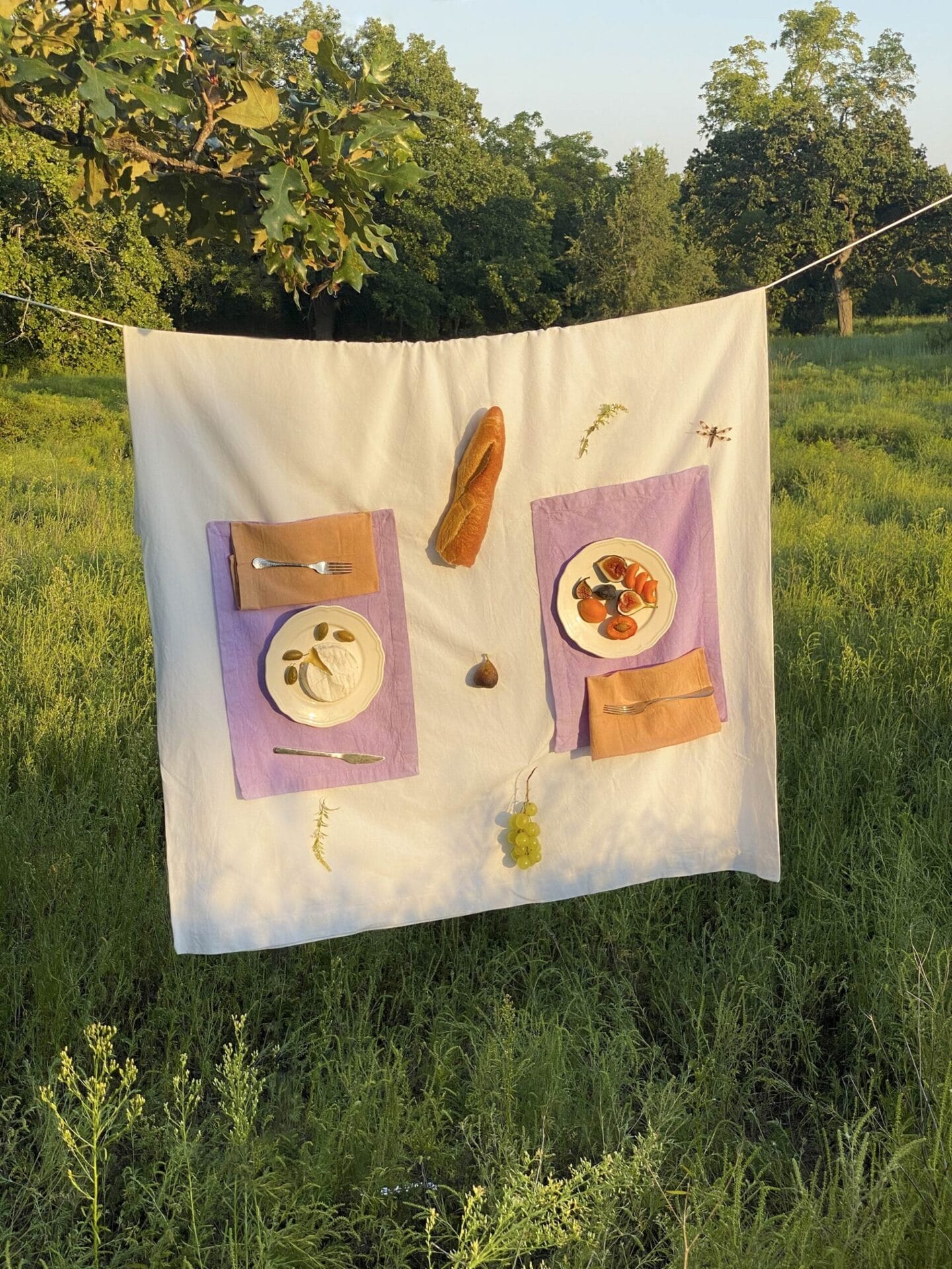 In a patch of flowers, she adorns a tomato-sauce base with margarine petals and mint leaves that are finished with mustard details. Another dense slice is torn and reassembled with edible gold before being smothered in sour cream and garnished with ketchup to resemble Kintsugi, the Japanese art of pottery repair.