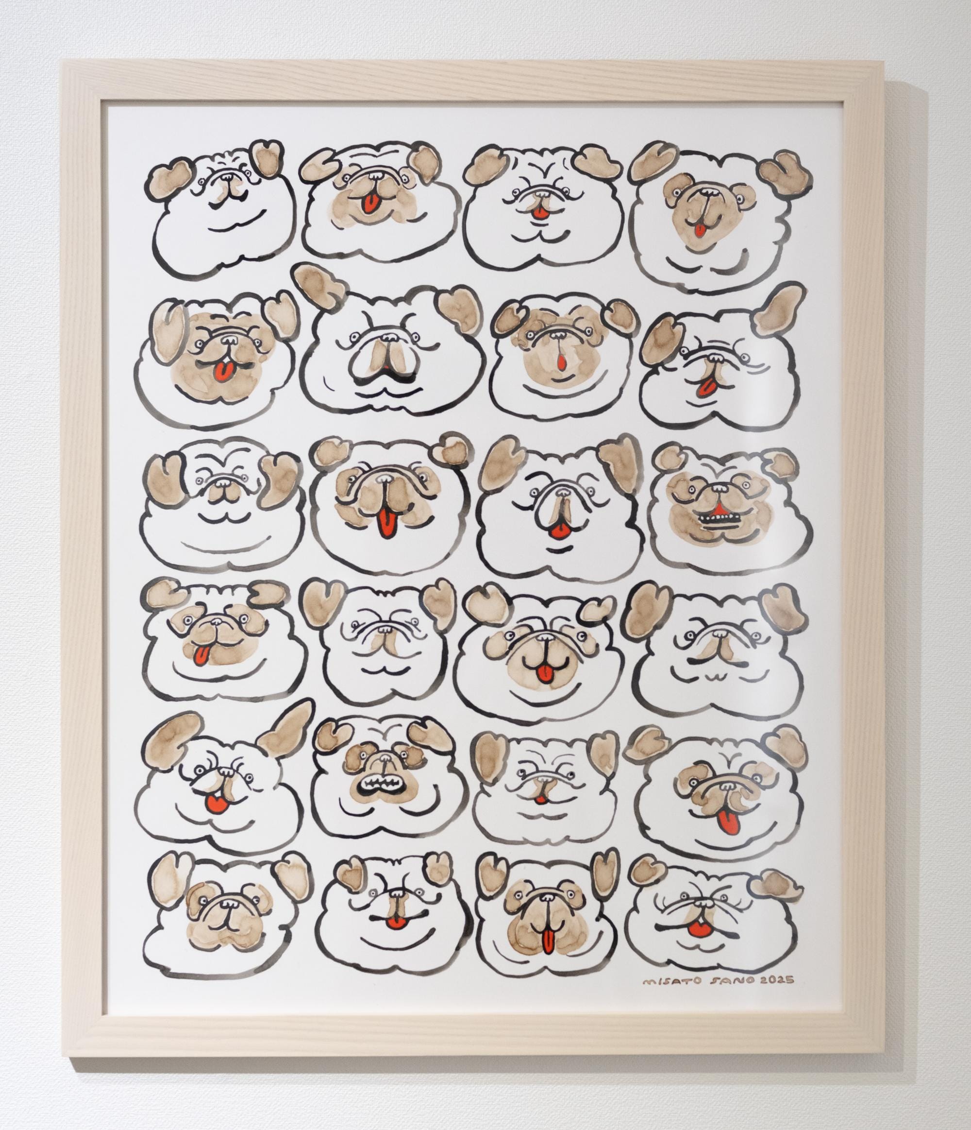 Self-portraiture remains a consistent theme within Sano’s practice. Each dog evokes a different emotion mirroring the artist’s personality, ranging from shy and skittish to excited and silly. “Visualizing my inner self through expressions and gestures full of charm and humor has also become an opportunity to deepen my self-love,” she shares.